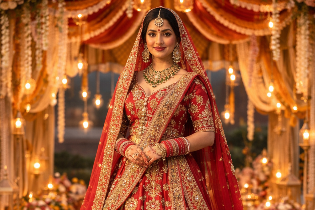 Build a simple lineup. One sacrifice outfit for haldi, one colourful set for mehendi, one glam look for sangeet, one traditional statement for the wedding, and one formal look for reception. Repeat smartly by switching blouses, jackets, jewellery, or hairstyles.