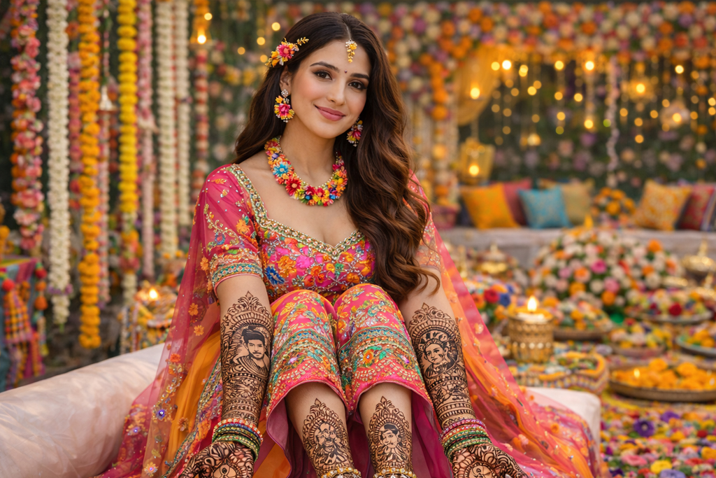 Photo-friendly tip: Mehendi photos focus on hands. Keep the outfit rich but the wrist area clean and practical.