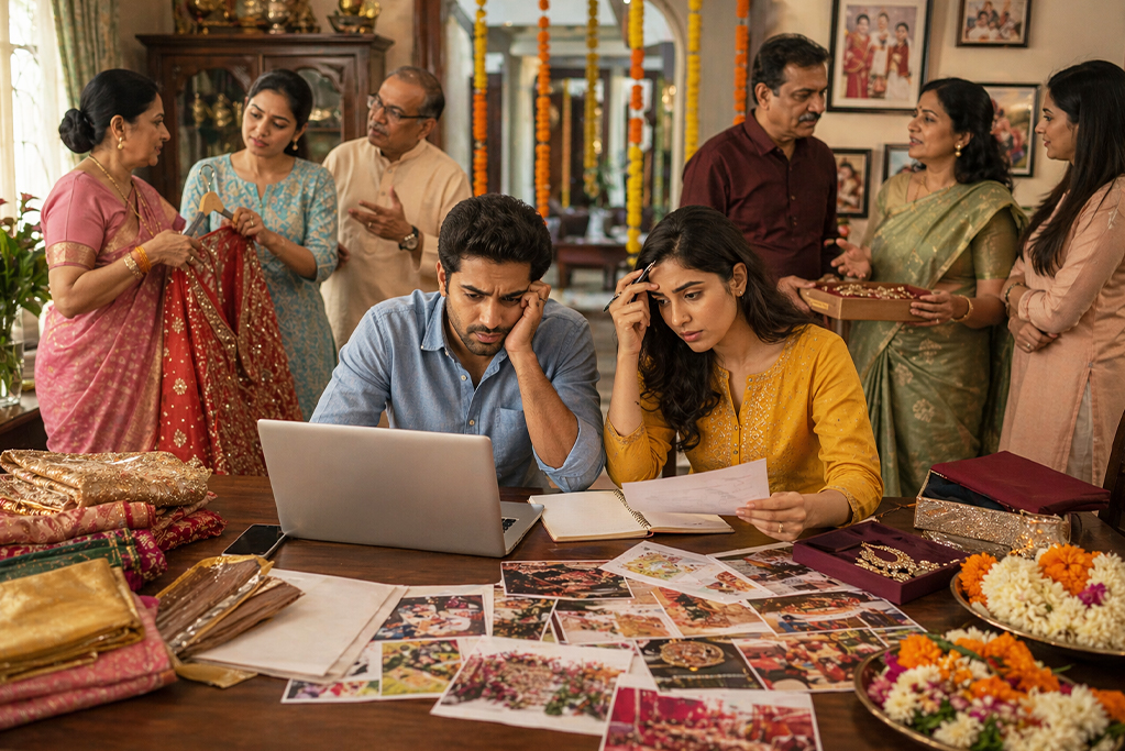 A short timeline is not stressful only because there is less time. It becomes stressful because too many major decisions have to be made at once. In India, weddings are rarely limited to the couple alone. Parents, relatives, rituals, shopping, guest coordination, and multiple events all enter the picture very quickly. When both partners are working, the challenge is not just planning the wedding. It is planning the wedding while still showing up for work, managing family expectations, and protecting your energy.